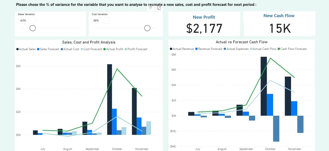 Gives clients the power to see the future of their business with what-if cash flow and profit analysis. By adjusting sales and cost variables, they can instantly forecast new profit and cash positions, turning uncertainty into clarity. With side-by-side actual versus forecast views, you help clients anticipate challenges, manage liquidity, and make smarter financial decisions before problems arise.